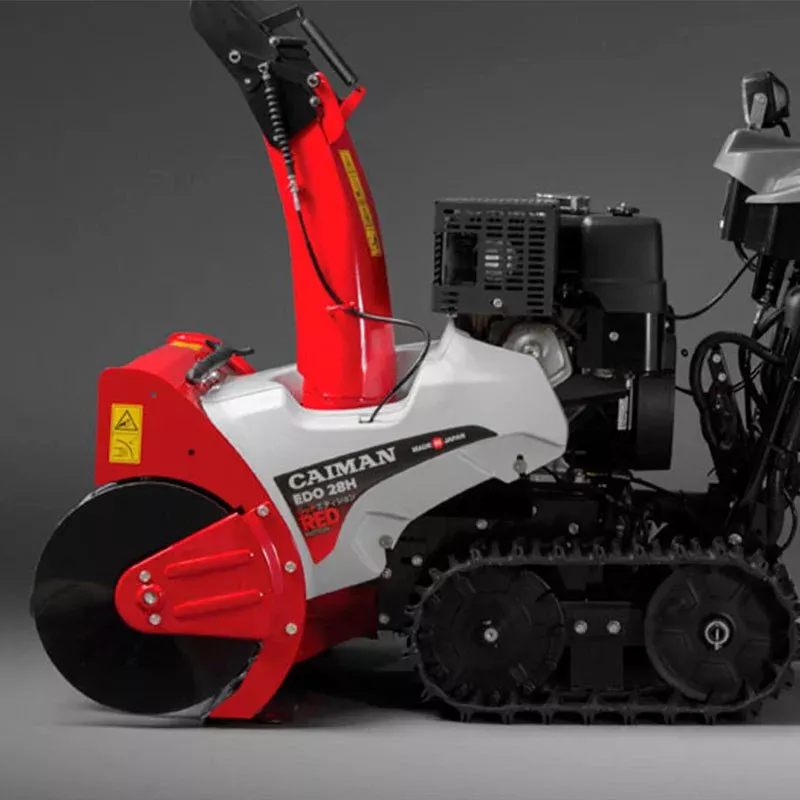 Японская профессиональная гусеничная бензиновая снегоуборочная машина Caiman Edo 28H с гидростатической трансмиссией обладает высокой производительностью (порядка 60 тонн снега в час) и способностью убирать как обычный, так и тяжелый, слежавшийся снег.