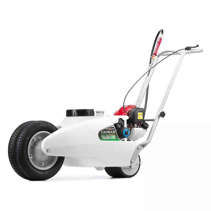Колесный бензиновый опрыскиватель Caiman Fog King PS25W (пр-во Япония) - это мобильный профессиональный высоконапорный агрегат, имеющий узкую конструкцию, благодаря которой он легко проходит по междурядьям. Распылитель может использоваться не только для борьбы с вредителями или дезинфекции, но и мытья корнеплодов. В стандартной комплектации он оснащается баком емкостью 25 литров, насадкой с латунным шаровым краном и шлангом 7,5 мм длиной 1,2 метра.