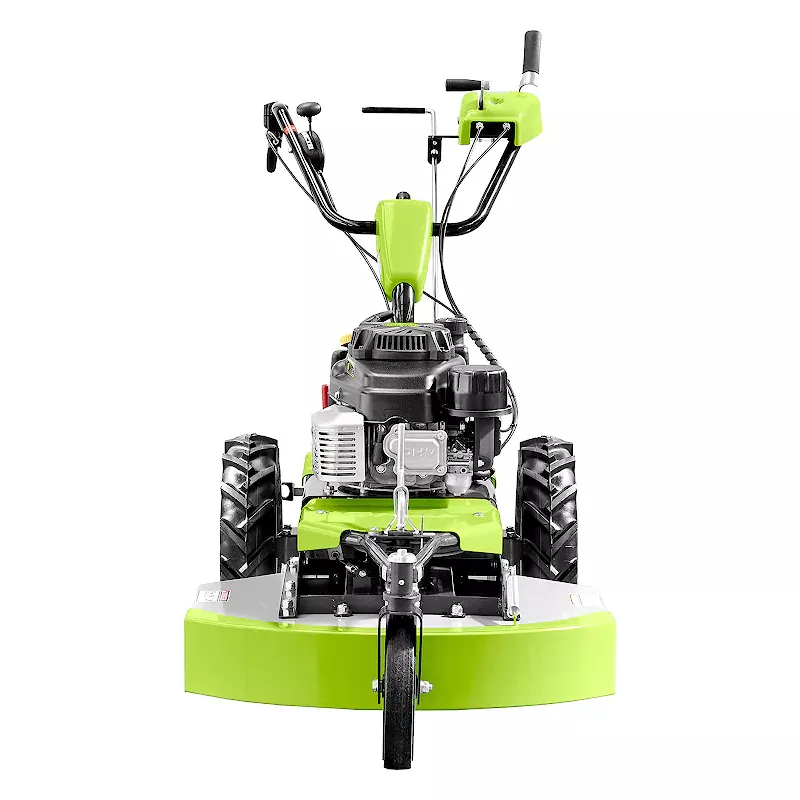 - Переднее поворотное колесо обеспечивает превосходное управление косилкой.