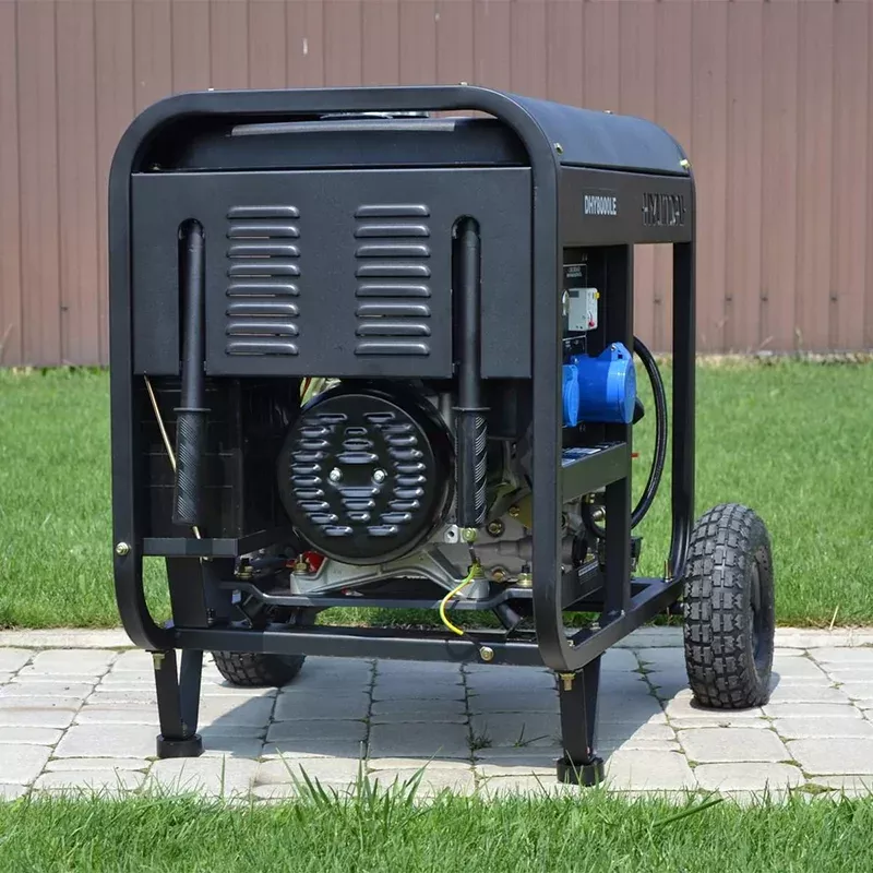 Объем стального топливного бака вмещает до 14 л топлива, что позволяет длительное время использовать генератор как основной источник энергии. Выходная мощность достигает 12 л. с., и дает возможность использовать профессиональный электроинструмент.