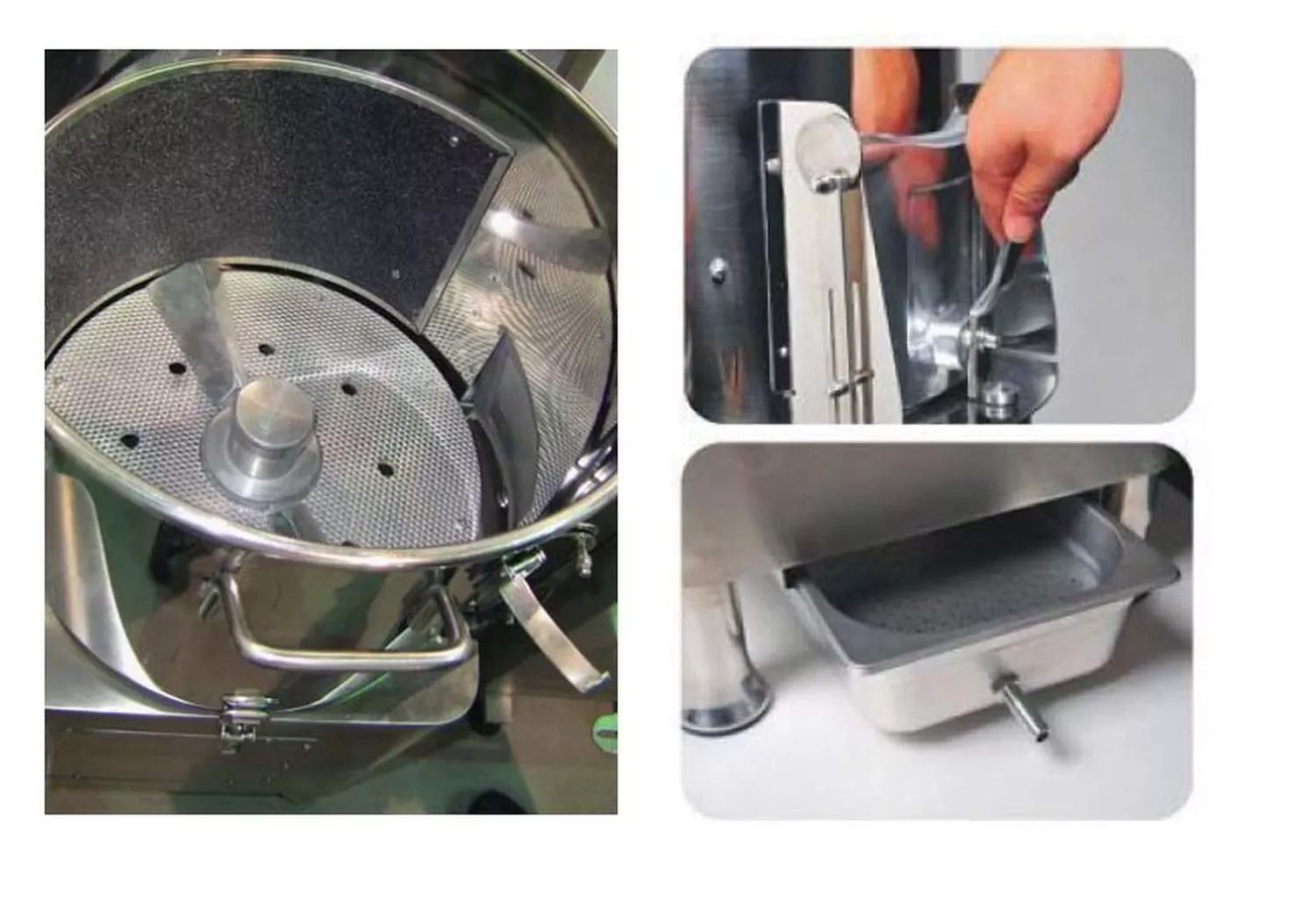 Разгрузочный люк откидывается вверх и обеспечивает полную герметичность в процессе очистки овощей, надежный запор легко открывается для выгрузки овощей.