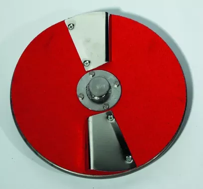 В картофелечистке облицовка, рабочий диск, загрузочный лоток и крышка выполнены из нержавеющей стали. На внутренней поверхности обечайки и на поверхности рабочего диска установлены сменные долговечные экологически чистые абразивные полотна.