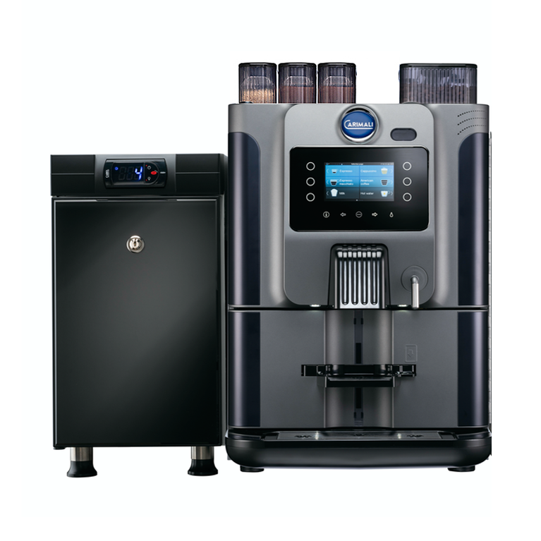 Суперавтоматическая кофемашина Carimali BlueDot BD-01-01-03 со встроенной кофемолкой, предназначена для приготовления превосходного кофе и кофейных напитков из натурального зернового кофе и натурального молока. Кофемашина Carimali Blue Dot компактная, ее высота менее 60 см. И поэтому она может быть установлена в стандартный кухонный шкаф – оптимальное решение для офиса. Производительность до 100 чашек.