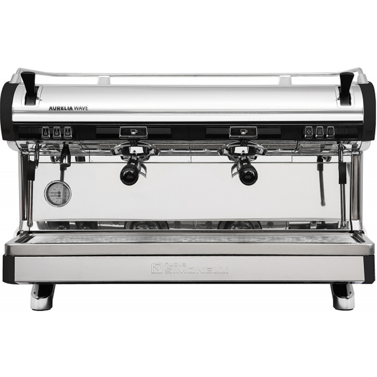 Кофемашина-полуавтомат традиционная Nuova Simonelli Aurelia WAVE 2 GR S Black с 2 высокими группами, светодиодной посветкой предусматривает ручную дозацию, автоуровень воды, подачу пара и подачу кипятка. Остановка производится вручную. Объем медного бойлера - 14л. Расстояние между рабочими группами - 230мм. Аппарат имеет 2 паровых крана, 1 кран подачи горячей воды с экономайзером, отражающее зеркало в нижней фронтальной части, которое позволяет оператору видеть дно портафильтра. Бойлер оснащён предохранительным клапаном, безвакуумным клапаном, датчиком давления, автоуровнем воды. Гидравлическая система включает в себя: встроенный объёмный насос, манометр насоса, индикатор уровня воды.