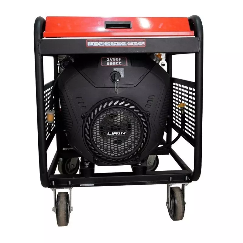 Данный генератор Lifan обладает высокой мощностью в 17.0/15.5 кВт, длительным временем непрерывной работы, имеет выходное напряжение 380В. Установка комплектуется колесами 10_ для удобства транспортировки и перемещения, электрическим стартером, аккумулятором 12В/36Ач, вольтметром, индикатором уровня топлива, системой контроля уровня масла, а также системой защиты от перегрузок (AVR). Медная обмотка альтернатора позволяет повысить КПД, уменьшить расход топлива, нагрев и износ агрегата, тем самым увеличивая срок его службы.