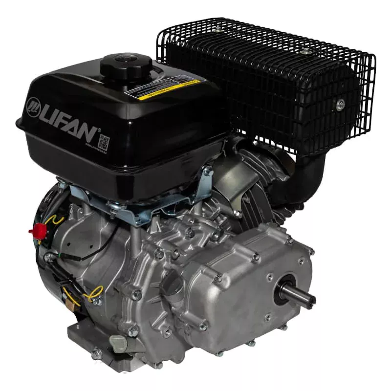 Бензиновый двигатель Lifan 192 F-2-R разработан для установки на мототехнику различного уровня. Двигатель хорошо подходит для установки на культиваторы и мотоблоки, мотобуксировщики, мотопомпы, генераторы и другую технику. Эта модель сочетает в себе долговечность, экономичность с умеренной стоимостью и простотой в использовании. Наличие понижающего редуктора позволяет расширить область применения двигателя. Это четырехтактный одноцилиндровый двигатель внутреннего сгорания. Рабочий объем цилиндра составляет 445 кубических сантиметров, номинальная мощность достигает 14,6 лошадиных сил, а максимальная может достигать 18.5 лошадиных сил. Диаметр цилиндра и тип газораспределительного механизма позволяют обеспечить компактные размеры двигателя, он свободно устанавливается на многие модели малой сельскохозяйственной техники. В качестве топлива эта модель использует широко распространенный автомобильный бензин марки АИ-92, потому проблем с горючим не возникнет. Коленчатый вал имеет горизонтальное расположение, это также способствует небольшим размерам, а кроме того существенно упрощает конструкцию и монтаж силового агрегата на шасси. Крутящий момент достигает 51 Н.м при 1500 оборотов в минуту, при этом сохраняется высокая стабильность работы и небольшой расход бензина. Емкость топливного бачка равна 6,5 литрам, одной заправки достаточно для длительной непрерывной работы. В качестве смазки используется доступное и известное каждому автомобилисту моторное масло 10х30, 10х40 для одной заправки маслом требуется не более 1,1 литра. Транзисторная система зажигания проста в обслуживании и долговечна, она способствует стабильной работе двигателя при любых условиях. Двигатель Lifan 192 F-2-R обладает массой в 36 килограмм, это легковесный и компактный агрегат, он способен обеспечить высокую продуктивность работы при минимальных затратах и потерях. Его простая конструкция не создаст проблем при установке или при обслуживании, использование эффективного воздушного охлаждения позволяет активно использовать мотор даже в жаркую погоду, удобный пусковой тросик обеспечивает легкий запуск двигателя.