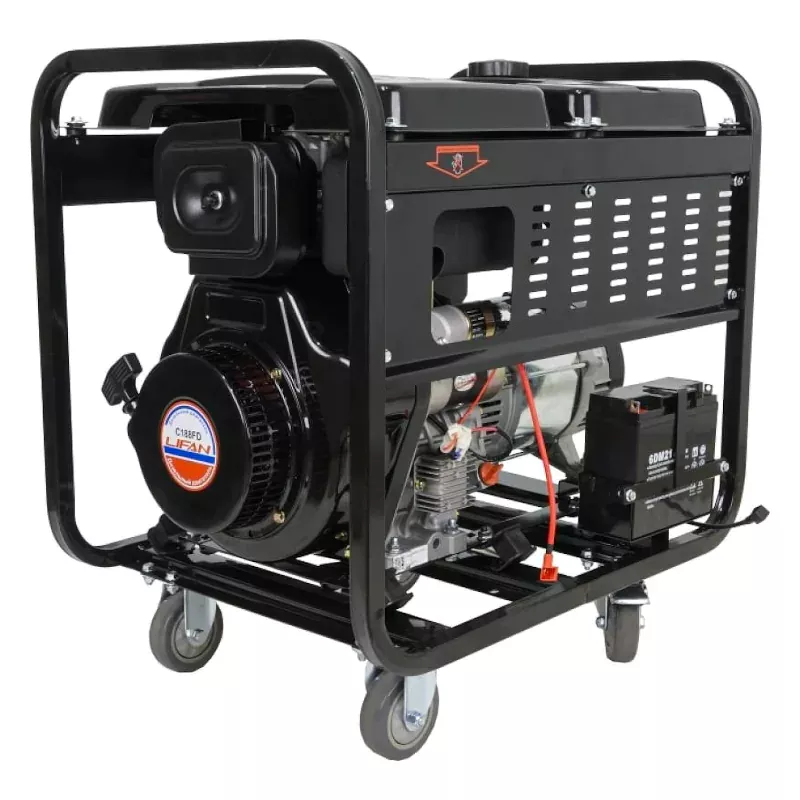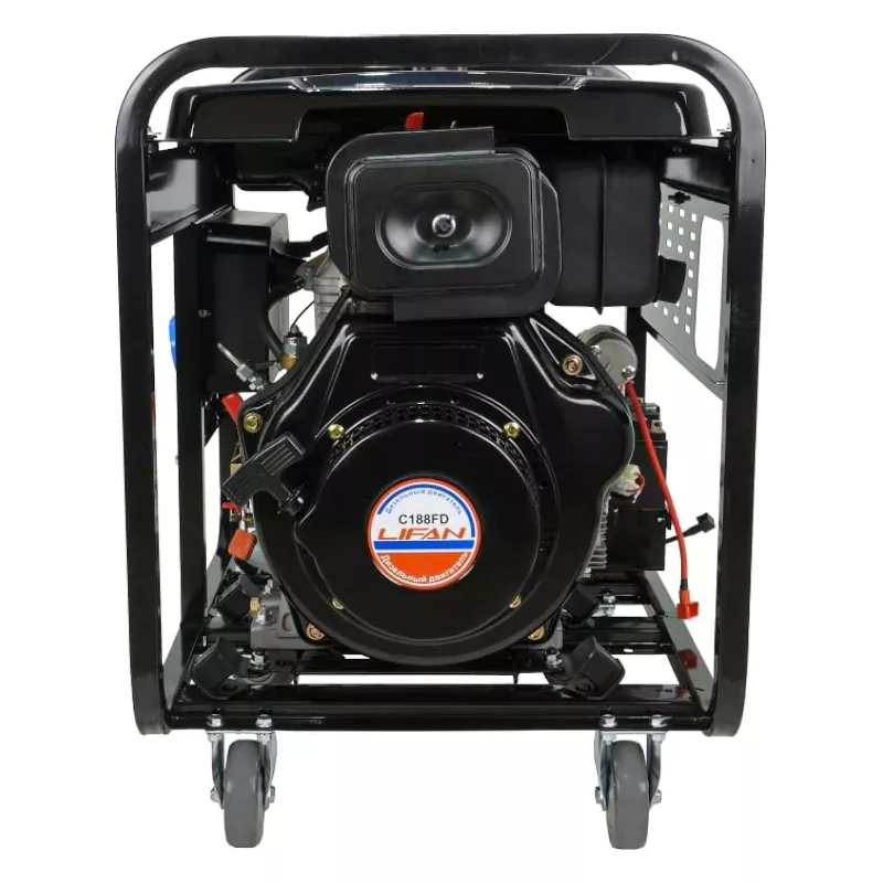 Дизельный генератор Lifan DG6500EA с максимальной мощностью 5,5 кВт станет незаменимым помощником в гараже, домашней мастерской, загородном доме или на строительной площадке. Он оснащен электростартером для быстрого запуска двигателя, функцией AVR и четырьмя колесиками для простого перемещения.
