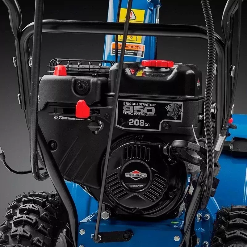 При использовании бензинового снегоочистителя в темное время суток применяется галогеновая фара, которая освещает рабочее пространство.