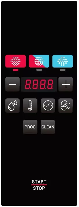 Простая электронная панель управления, позволяющая выбрать режим работы и задать доступные базовые параметры: уровень влажности, температуру, продолжительность, скорость вентилятора, запускать систему автоматической очистки Mycare.