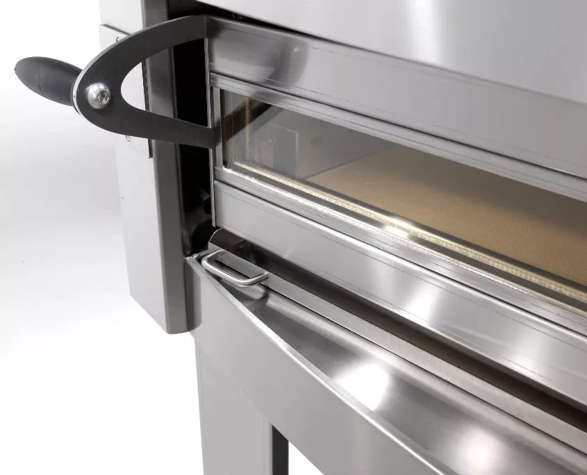 Печь для пиццы Cuppone ML635L/2CD с передней панелью округлой формы из нержавеющей стали предназначена для приготовления пиццы и различных закусок, таких как, сэндвичи, куриные стрипсы и т.д. на предприятиях общественного питания.