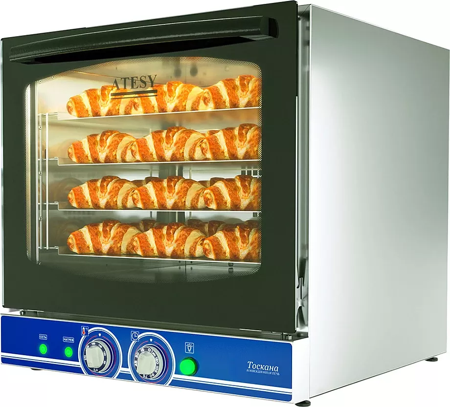 Печь конвекционная электрическая Atesy Тоскана КП-4-600/400-01-У с пароувлажнением предназначена для выпекания изделий из теста, приготовления и разогрева пищи на объектах общественного питания.