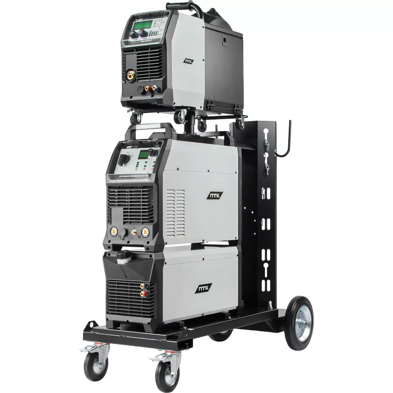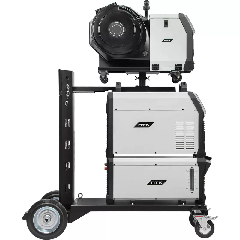 Аппарат поставляется в комплекте с тележкой для перемещения аппарата, подающего механизма, БЖО и баллона с защитным газом. Тележка обладает надежной усиленной конструкцией, где толщина металла около 3 мм. Передние вращающиеся колеса с тормозом и высокие устойчивые задние колеса обеспечат быстрое перемещение оборудования в сборе по рабочей зоне.