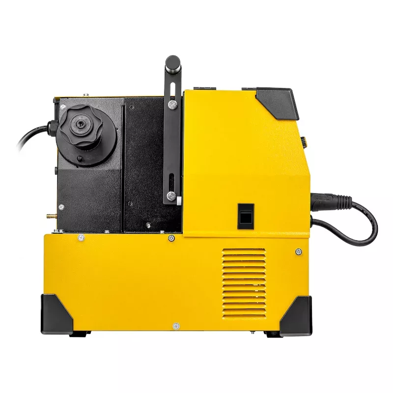 - Металлический механизм подачи проволоки. Используется сварочная проволока диаметром от 0,6 до 1,0 мм. Можно установить катушку с проволокой весом до 18 кг (D300) и регулировать скорость подачи проволоки от 2,5 до 13 м/мин.