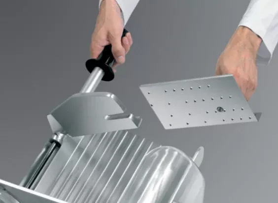 Слайсер Rheninghaus Mondial 300 с функцией охлаждения, уникальным дизайном, точной регулировкой толщины и гладким ходом каретки идеально подходит для эксплуатации в супермаркетах и кухнях больших ресторанов.