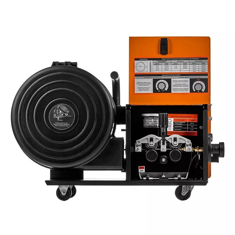 - Прочный четырехроликовый металлический механизм подачи проволоки;