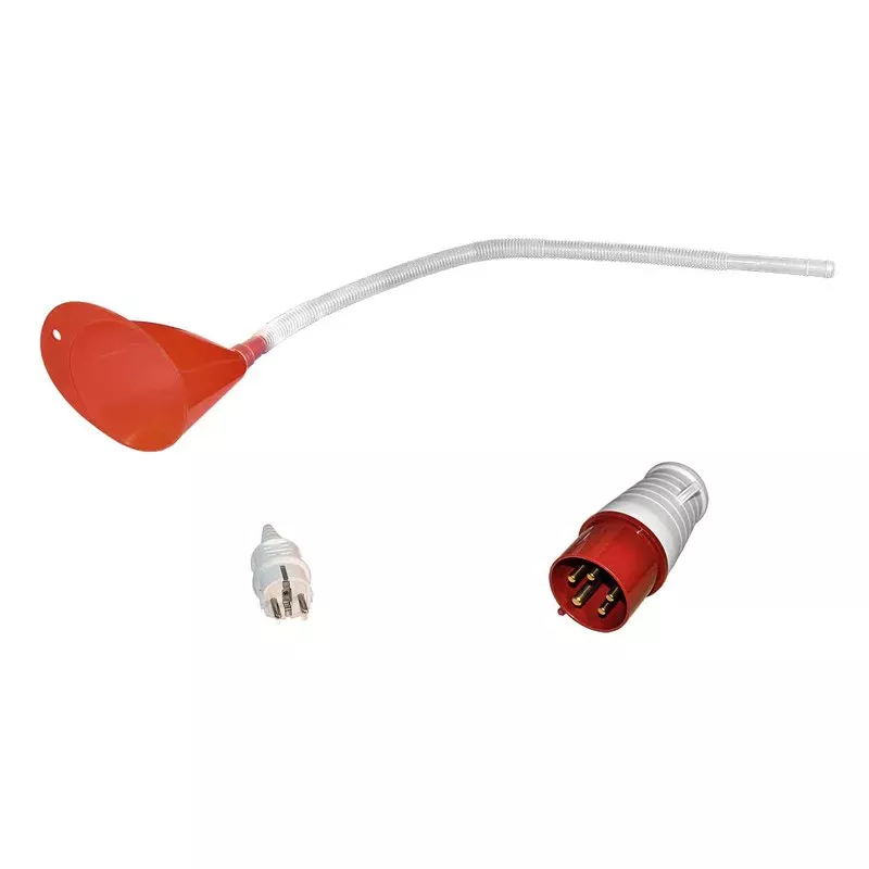 Дизельный генератор оснащен двумя розетками для подключения потребителей однофазного и трехфазного тока. На передней панели расположены индикаторы, сигнализирующие о перегрузке или низком уровне масла. Автоматический выключатель срабатывает в случае короткого замыкания или подключения слишком большой нагрузки. На многофункциональном дисплее отображаются рабочие показатели, такие как напряжение, частота, сила тока и моточасы. Вместительный топливный бак обеспечивает автономную работу в течение 6,4 часов.