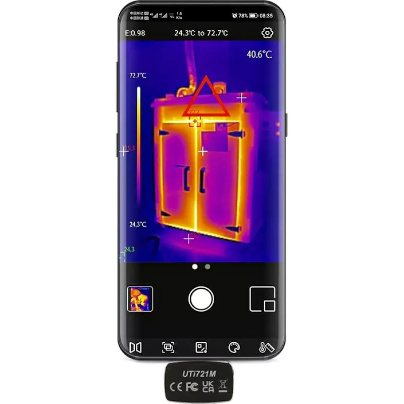 UTi721M — это профессиональный тепловизионный модуль для смартфонов, компактный и простой в эксплуатации благодаря подключению к мобильным телефонам. Его ИК-разрешение 256х192 обеспечивает четкое изображение с быстрым откликом. С помощью этого тепловизионного модуля пользователи могут быстрее и проще устранять проблемы с HVAC или исследовать проблемы с источниками тепла в доме и скрытые проблемы. Это идеальный инструмент для домовладельцев, любителей активного отдыха, инженеров, подрядчиков, строителей и т. д.