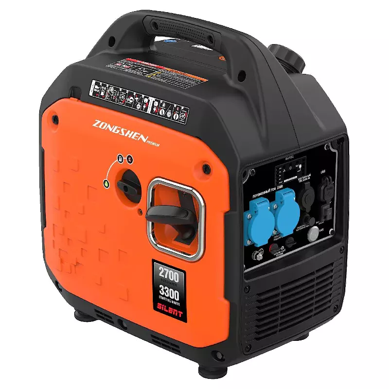 Бензиновый генератор оснащен надежным бензиновым двигателем Zongshen и синхронным альтернатором. Электрический стартер обеспечивает простоту и легкость запуска. Для подключения потребителей предусмотрено две розетки 220 В, разъем 12 В и порт USB. Это позволяет обеспечить работу нескольких устройств общей мощностью до 2,9 кВт.